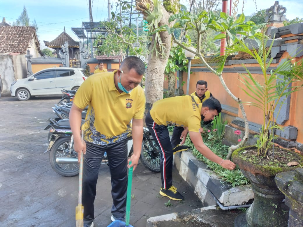 “Kita harus bersyukur bahwa kondisi kantor kita ini sudah sangat bagus dan masih asri, untuk itu mari kita semua ikut menjaga kebersihan dan keasriannya agar kita semua dapat bekerja dengan senang dan nyaman kalau lingkungan kita bersih,” Ucap Kapolsek Bangli.