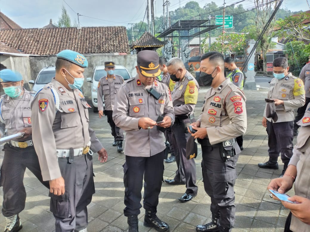Sehabis apel pagi dan pengarahan yang dipimpin oleh Kapolsek Bangli Kompol Made Dwi Puja Rimbawa, S.H.,M.H, didampingi didampingi Pawas kemudian dilanjutkan dengan pemeriksaan terhadap semua anggota dengan sasaran sikap tampang, kelengkapan perorangan, maupun surat- surat seperti kartu anggota Polri, Kartu tanda penduduk (KTP), SIM, dan STNK.