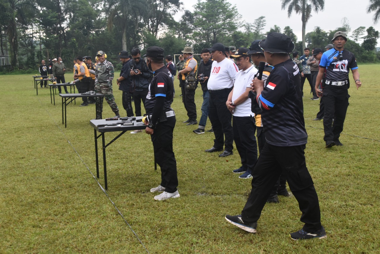 Latihan diawali dengan safety brief, pengenalan dan tata cara penggunaan senjata, serta peragaan tentang tata cara menembak yang benar dan aman. Segenap Forkopimda Wonosobo serta tamu.
