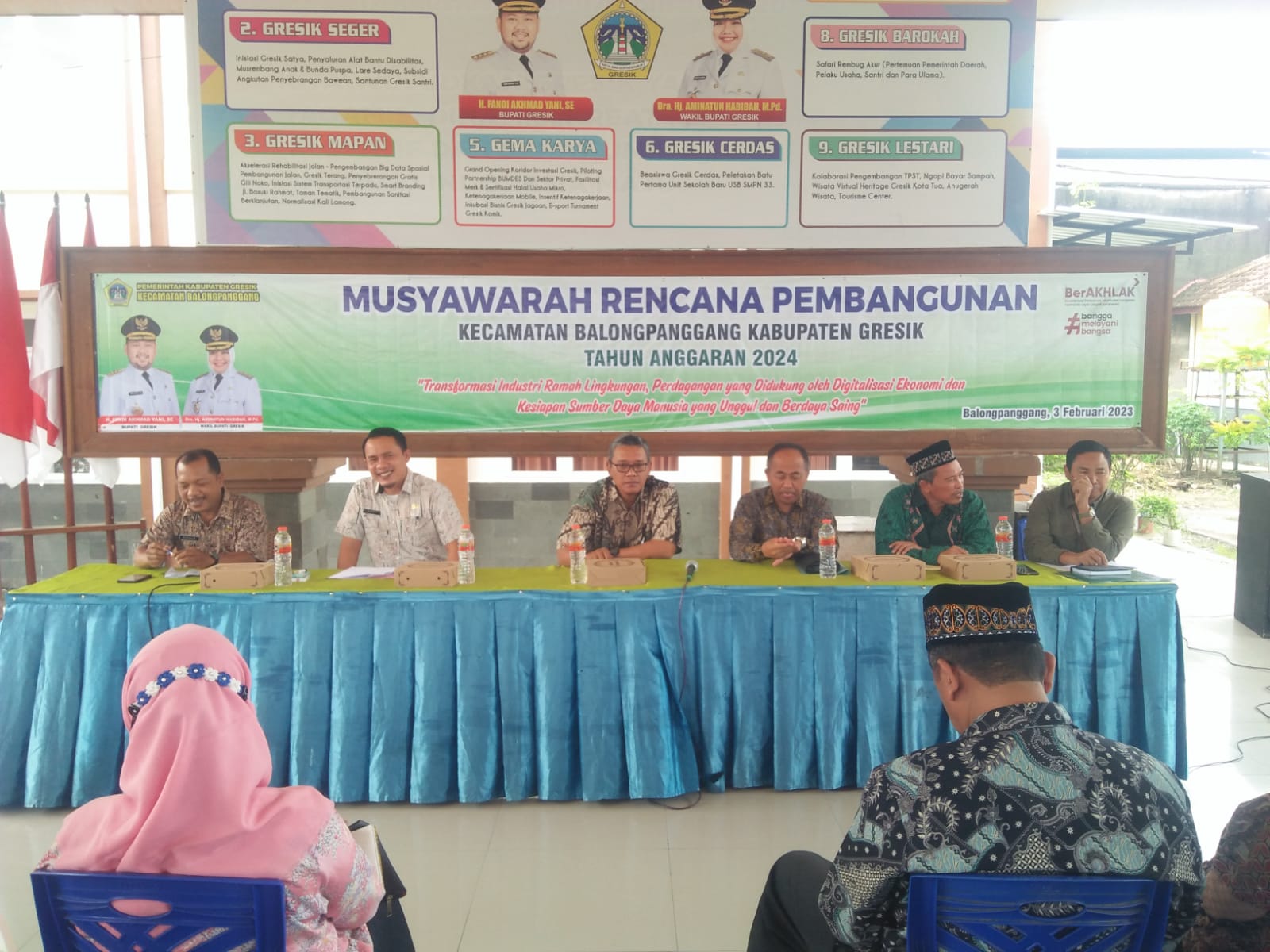 Musyawarah tersebut digelar di Aula Pendopo Kecamatan Balongpanggang dan dihadiri oleh Anggota DPRD Gresik (Achmad Kusriyanto Pujiantoro dan M. Syafik AM), Perwakilan dari Bapeda, LH, Kapolsek AKP M. Zainudin dan, Danramil Kapten Inf. Mashudi, Kades, Sekdes, TP PKK Desa Se Kecamatan, Kepala UPT Puskesmas Dapet dr Erna, Kepala UPT Puskeswan Balongpanggang Niken dan undangan lainnya.