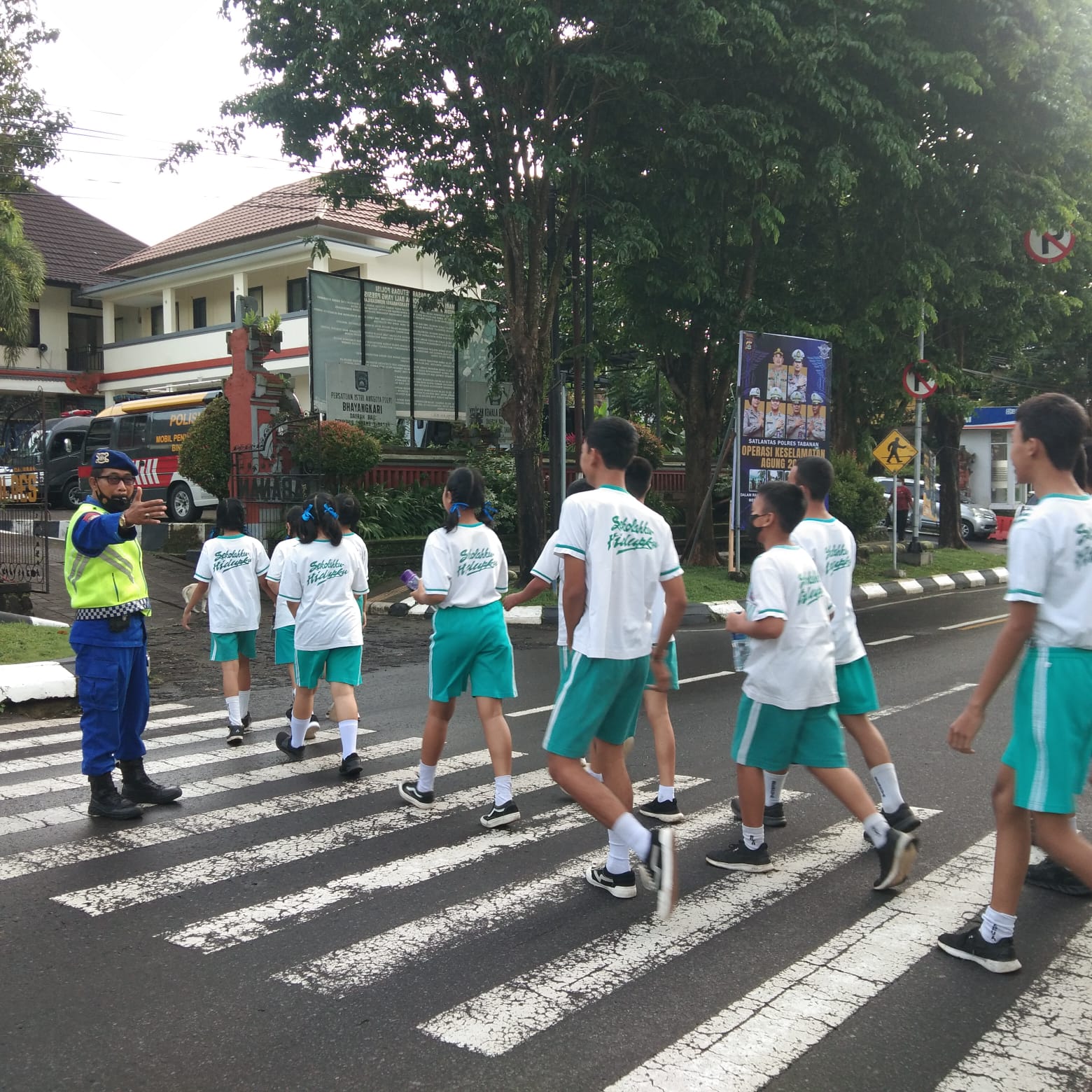 Berdasarkan hasil pemantauan di lapangan tampak personil Polres Tabanan ditugaskan di beberapa titik persimpangan jalan , tempat keramaian, depan sekolah dan tempat lainnya yang dianggap rawan. Seperti tampak di salah satu tempat penyeberangan yang berlokasi di jalan Pahlawan – Tabanan Aiptu Putu Eka Sentana dari satuan Pol Airud Polres Tabanan menyeberangkan para siswa SMP yang melintas di jalan tersebut saat arus lalulintas sedang ramai di pagi hari.( Selasa 7/2/2023 pukul 07.00 wita).