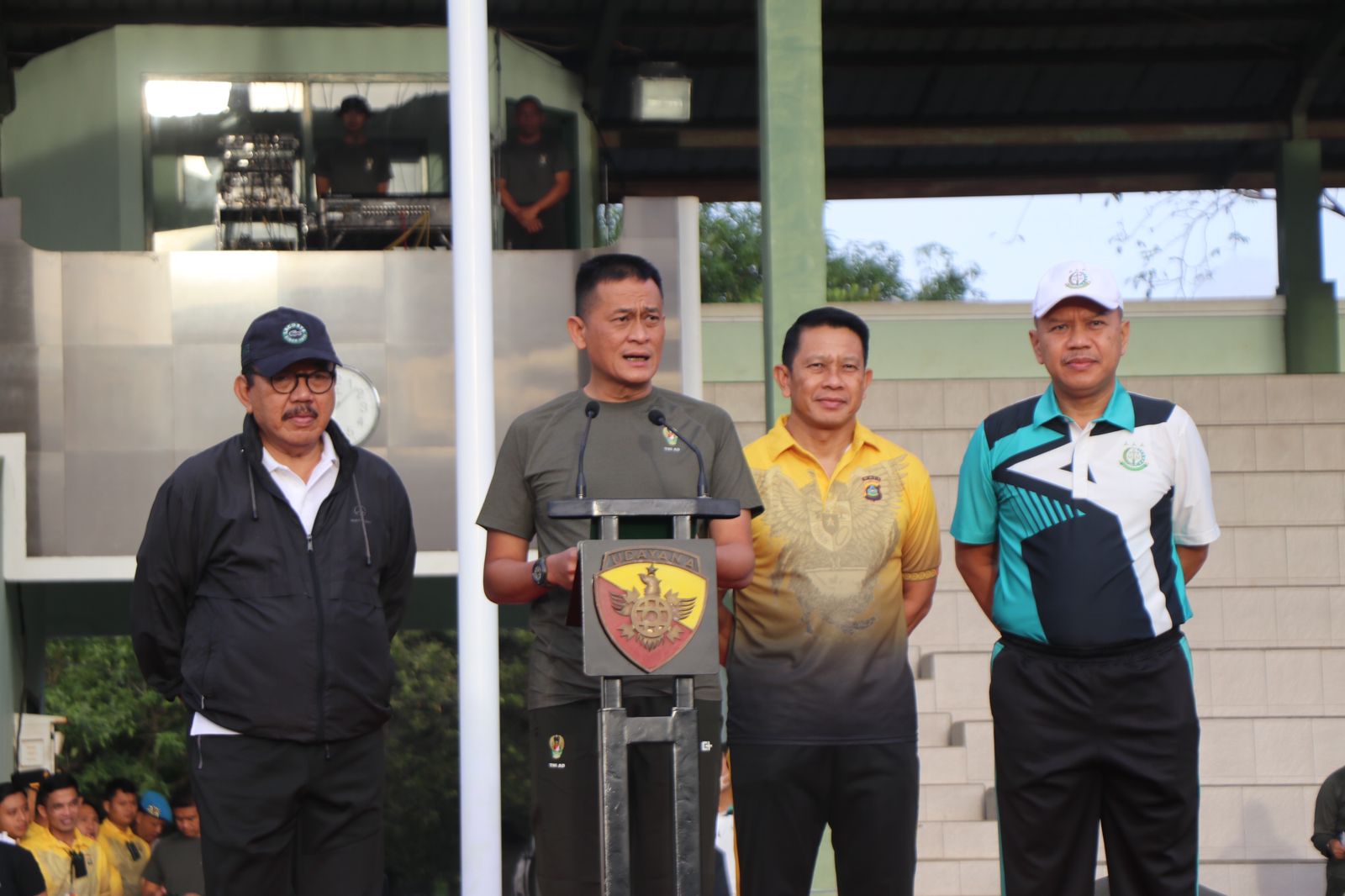 Olahraga bersama ini turut dihadiri oleh Wakil Gubernur Bali, Dr. Ir. Tjokorda Oka Artha Ardana Sukawati, M.Si., Pangdam IX/Udayana, Mayjen. TNI. Sonny Aprianto, S.E., M.M, Kapolda Bali, Irjen. Pol. Drs. Putu Jayan Danu Putra, S.H., M.Si., Forkopimda Provinsi Bali, Pejabat Utama Kodam IX/Udayana dan Pejabat Utama Polda Bali.