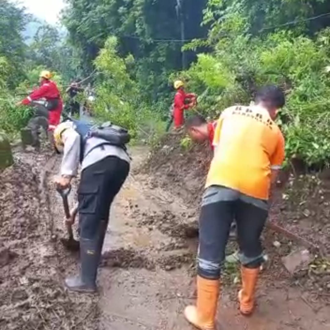 Bhabinkamtibmas Desa Bunutan Polsek Abang mengatakan telah terjadi hujan deras di Banjar Bangle sehingga mengakibatkan longsor yang menutupi badan jalan.