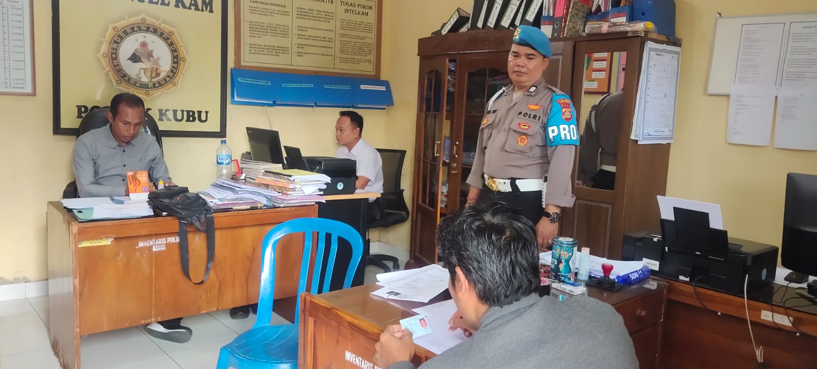 Tampak Hal itu dilakukan Unit Propam Polsek Kubu Polres Karangasem Aiptu I Nyoman Tri Udayana ketika sedang memantau dan melakukan pengawasan terhadap Anggota yang melayani masyarakat Pencari Surat Keterangan Catatan Kriminal ( SKCK) , di Kantor Pelayanan Unit Intelkam Polsek Kubu, Senin (20/2).
