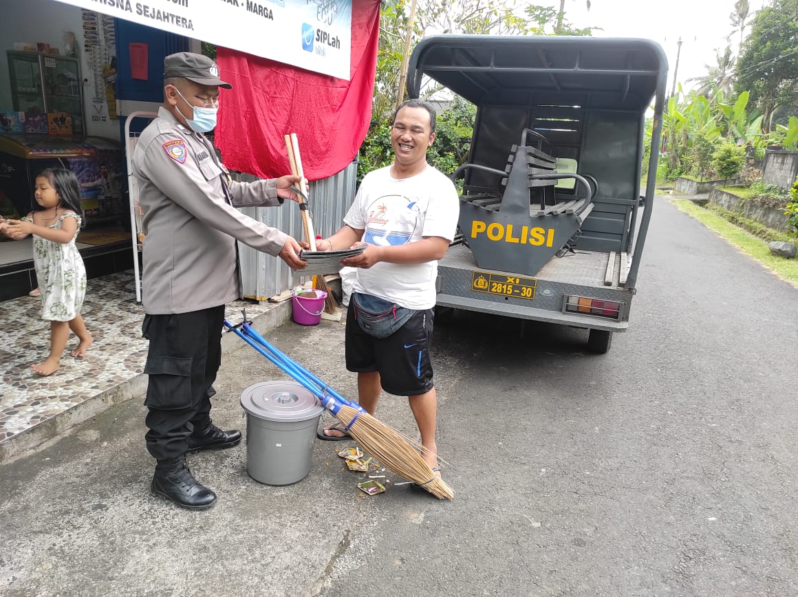 Untuk kelompok PKK kami berikan sapu lidi, serok dan tong sampah diterima oleh kawil I Made Astra Winaya, Spd, Mpd. Sedangkan kepada kelompok Tani Banjar Pekilen – Desa Selanbawak diberikan berupa cangkul dan sabit, yang diterima I Wayan Puniya. Mudah-mudahan dari apa yang kami berikan bisa bermanfaat sesuai dengan peruntukannya ‘ ungkap Bhabinkamtibmas Desa Selanbawak.