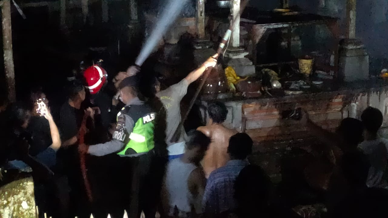 BANGLI, Liputan Terkini – Kesigapan warga dan kecepatan bertindak Anggota Polsek Bangli di Pimpin langsung Kapolsek Bangli jajaran Polres Bangli Kompol Made Dwi Puja Rimbawa, S.H, M.H, didampingi Pawas, melaksanakan pengamanan Pemadaman kebakaran Bale Pesamuan Ageng Pura Dalem Siwa Dampati Sidawa, Desa Tamanbali, Kec/Kab. Bangli. Selasa malam (28/02/2023).