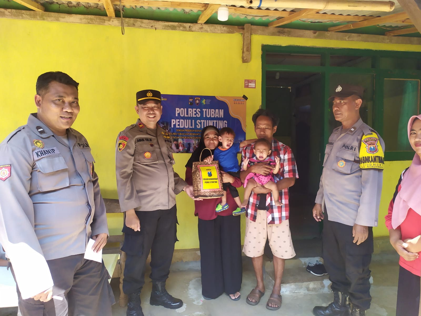 Kapolsek Kenduruan Polres Tuban IPTU Agus Tri Wahyudi, S.H dengan didampingi Kanit Binmas, Bhabinkamtibmas Desa Sidomukti dan Bidan Desa Sidomukti mendatangi keluarga anak yang mengalami stunting di Desa Sidomukti, Kec. Kenduruan, Kab. Tuban, Jum’at (10/3/2023).