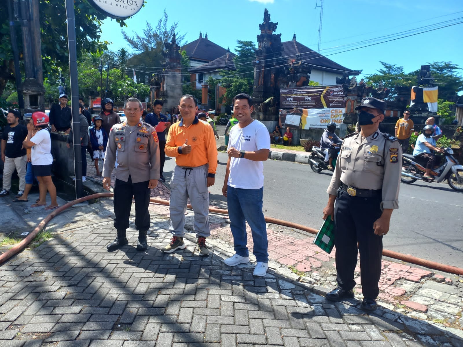 Menindaklanjuti Adanya laporan warga terkait peristiwa kebakaran, Personil SPKT Polsek Gianyar dipimpin Kapolsek Kompol I Ketut Tomiyasa, S.H., M.H. langsung mendatangi TKP.