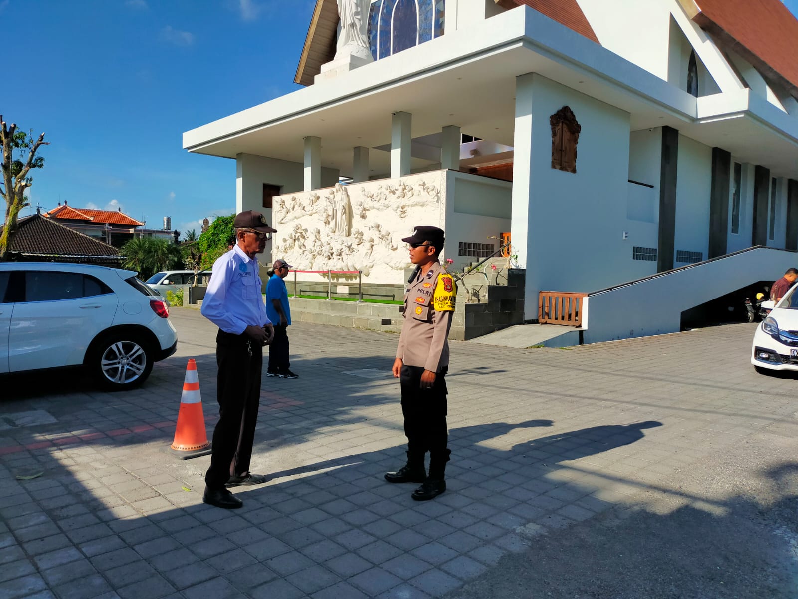 Bhabinkamtibmas Sidan Pengamanan Kegiatan Misa Hari Minggu di Gereja Santa Maria Ratu Rosari