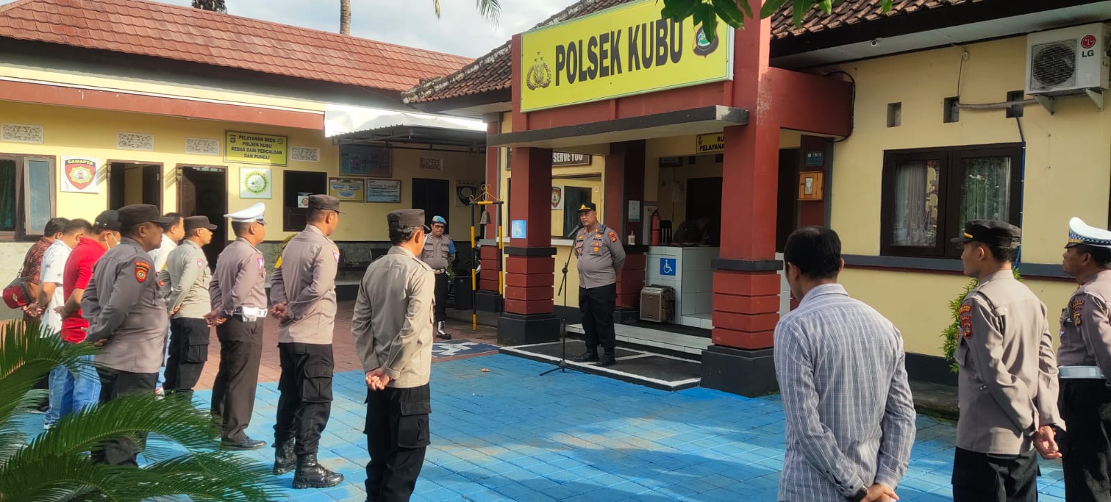 Giat apel pagi berlangsung dihalaman Mapolsek Kubu, dipimpin oleh Kapolsek Kubu AKP. Ida Bagus Astawa , SH kegiatan apel pagi diikuti oleh anggota Polsek Kubu terdiri dari Waka Polsek, Para Kanit, Kasi, Kasub dan anggota.