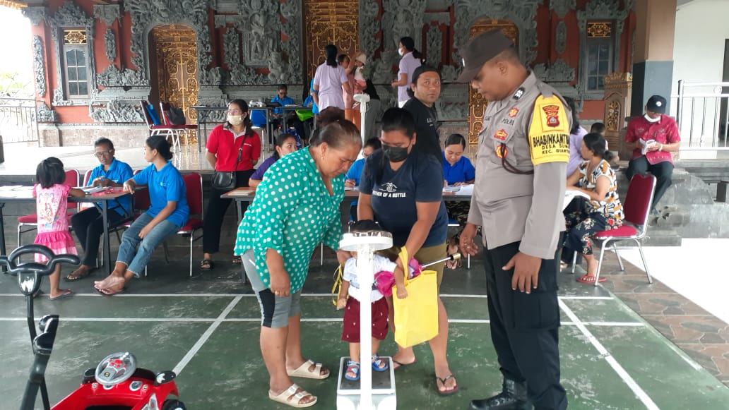 GIANYAR, liputanterkini.co.id – Bhabinkamtibmas Desa Suwat Aiptu AA Gde Agung melaksanakan sambang dan pantau kegiatan Posyandu bertempat di Balai Banjar Desa Suwat, Kecamatan Gianyar, Selasa (11/4) pagi.