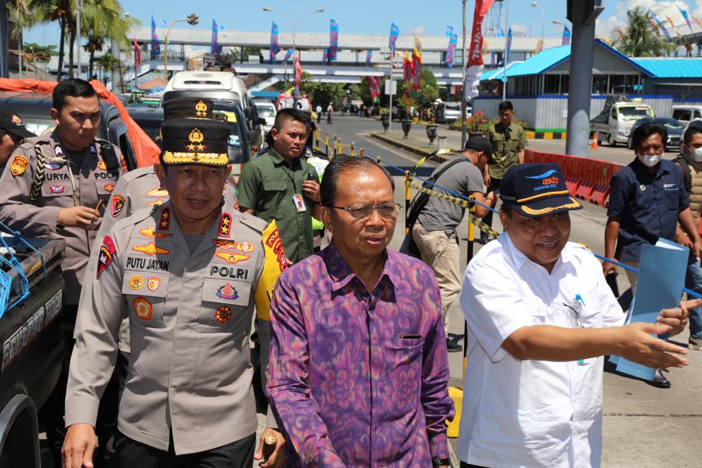 JEMBRANA, liputanterkini.co.id – Kepala Kepolisian Daerah Bali Irjen. Pol. Drs. Putu Jayan Danu Putra, S.H., M.Si., dan Gubernur Bali, Dr. Ir. I Wayan Koster, M.M. melaksanakan pengecekan arus mudik di pelabuhan Gilimanuk, Jembrana, Rabu (19/4/2023).