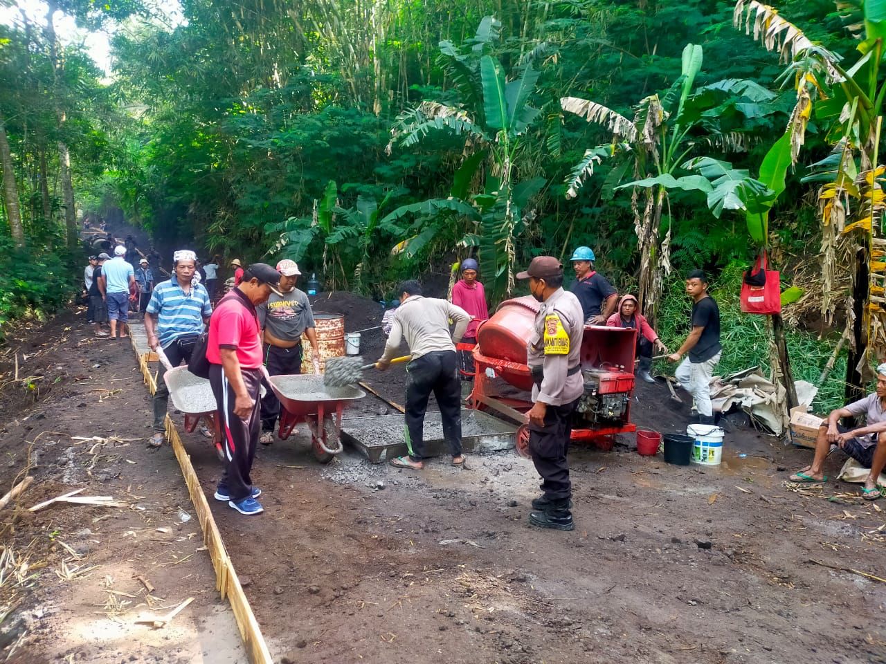 Kehadiran Bhabin kamtibmas bersama perbekel Desa bhuana giri Ir I Ngh Diarsa dan TPK, I Nym Madra, untuk memastikan pengerjaan Rambat beton jalan tersebut sesuai dengan ketentuan agar tidak terkesan asal asalan.