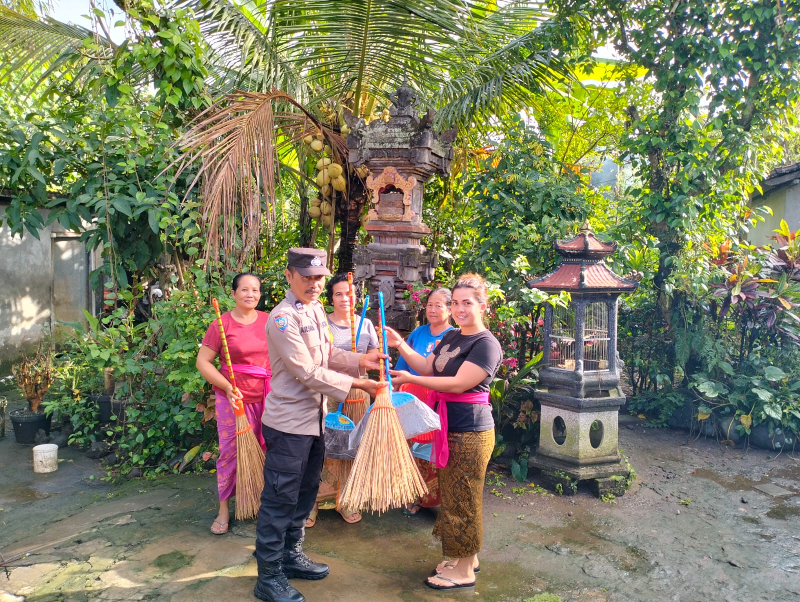 Berkaitan dengan hal tersebut, bertempat di Banjar Nagi, Desa Petulu, Kecamatan Ubud, Kabupaten Gianyar, Bhabinkamtibmas Aiptu I Made Arsana menyerahkan Sarkon kepada para pecalang berupa Alat kebersihan kepada PKK. Kamis (27/04/2023).