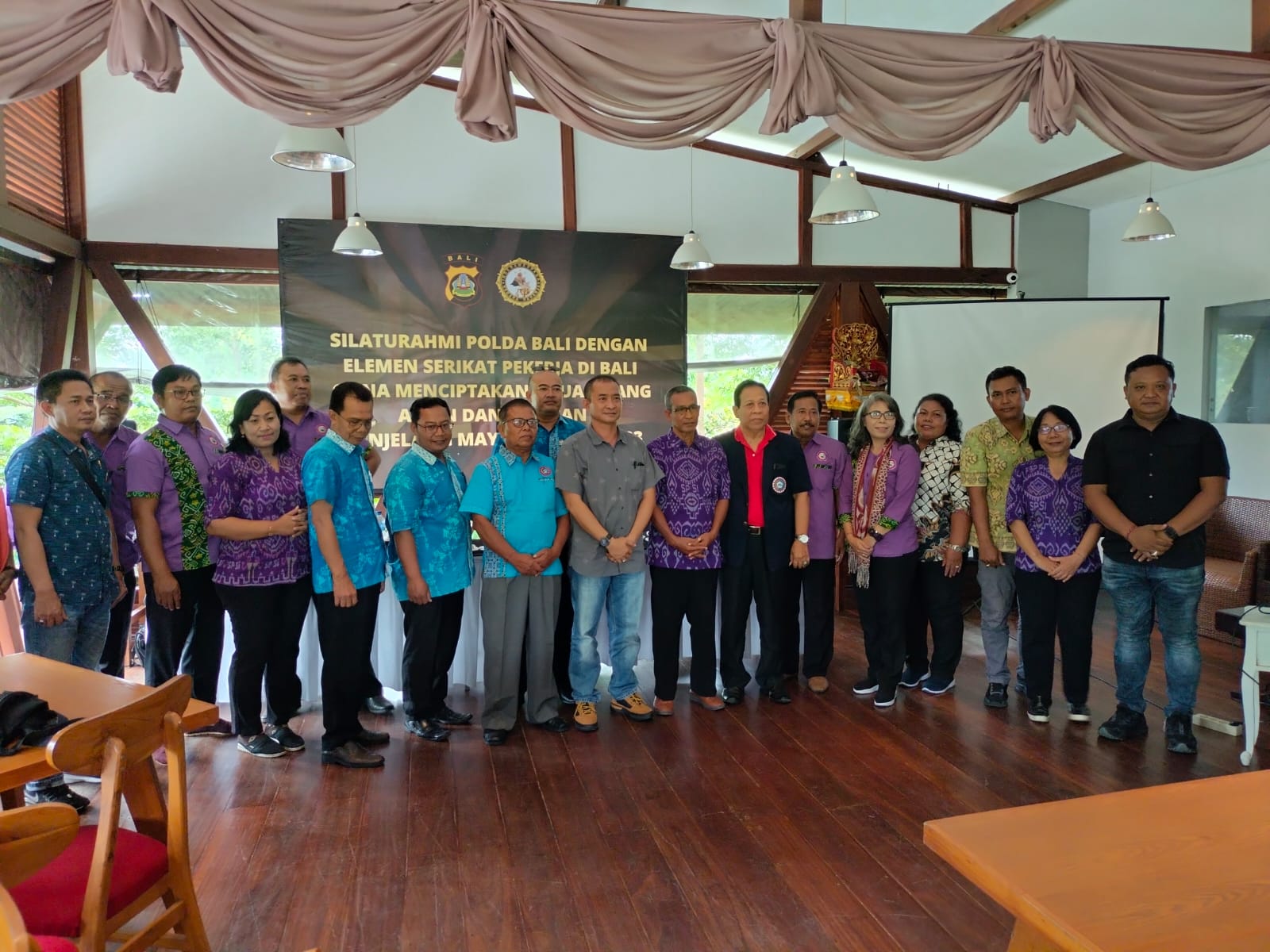 Silahturahmi Ditintelkam Polda Bali dengan Elemen Serikat Pekerja di Bali diharapkan mampu mereduksi Serikat Pekerja yang akan melaksanakan aksi unjuk rasa dalam rangka memperingati Hari Buruh Internasional (Mayday) tahun 2023. Pertemuan ini juga diisi dengan Deklarasi dari Elemen Serikat Pekerja yang berkomitmen untuk mendukung perayaan May Day tahun 2023 aman dan nyaman.**