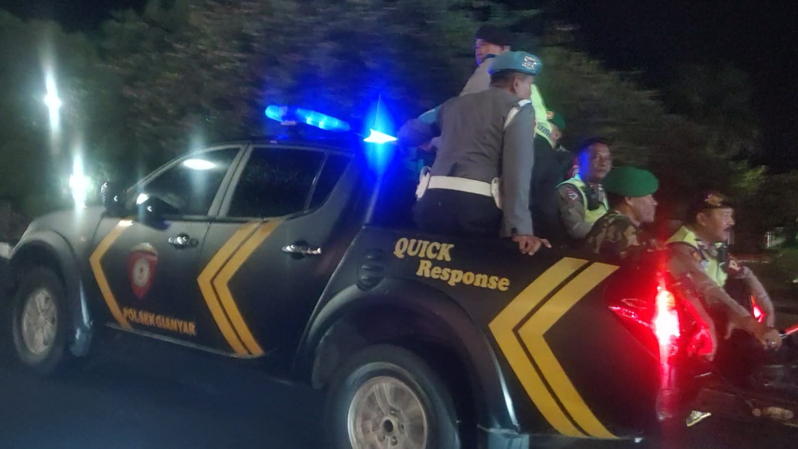 Patroli sinergitas TNI-Polri dipimpin langsung Kapolsek Gianyar Kompol I Gede Sudyatmaja, S.H., M.H. bersama anggota dan personil Koramil 01 Gianyar, Sabtu (29/4) malam.