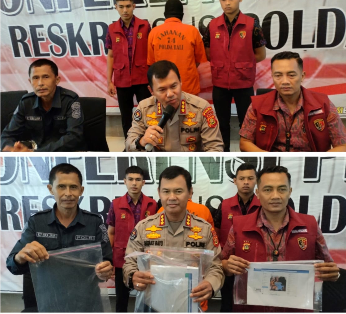 DENPASAR, liputanterkini.co.id – Konferensi Pers Dit Reskrimsus Polda Bali yang bertempat di lobby Reskrimsus, di pimpin oleh Kabid Humas Kombes Pol Satake Bayu S.I.K., M.Si., di dampingi Kasubdit Siber Ditreskrimsus AKBP Nanang Prihasmoko S.T., S.H., M.H. dan kasubid penmas AKBP Ketut Eka Jaya S.Sos., M.H., pada selasa (2/5/2023).