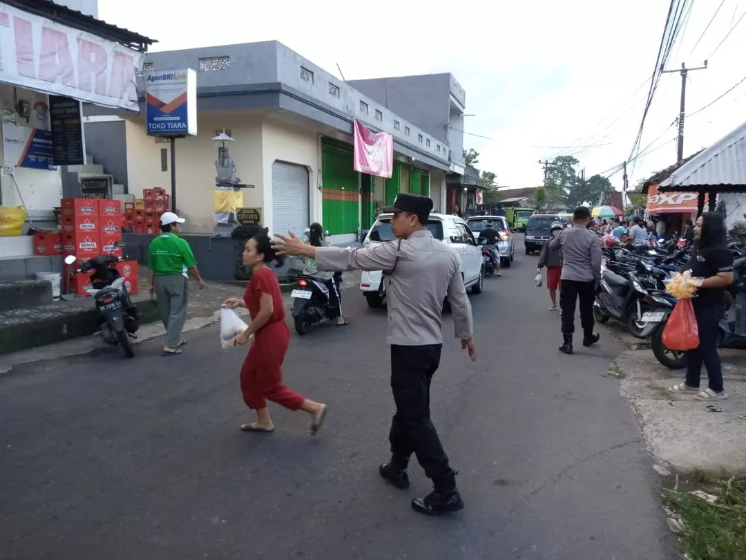 Seperti pagi ini Kaspk II Aiptu I Komang Kariana bersama Anggota jaga melaksanakan gatur lalin di depan Pasar Sidemen Kec Sidemen Kab Karangasem, Minggu (13/05/2023).