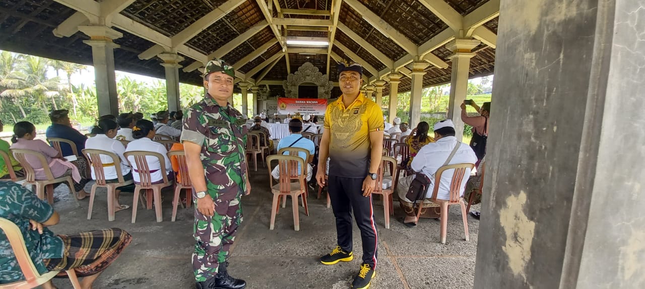 GIANYAR, liputanterkini.co.id – di Wantilan Jaba Pura Dalem Desa Adat Sanding Kec. Tampaksiring, Babinsa Sanding Ramil 1616-03/Tampaksiring Pelda I Made Murtono bersama Bhabinkamtibmas Desa Sanding Aiptu I Wayan Swandika melaksanakan kegiatan pemantauan kegiatan Darma Wacana Peningkatan Kapasitas Pemangku Lan Keprajuruan Desa Adat Sanding Kec. Tampaksiring.