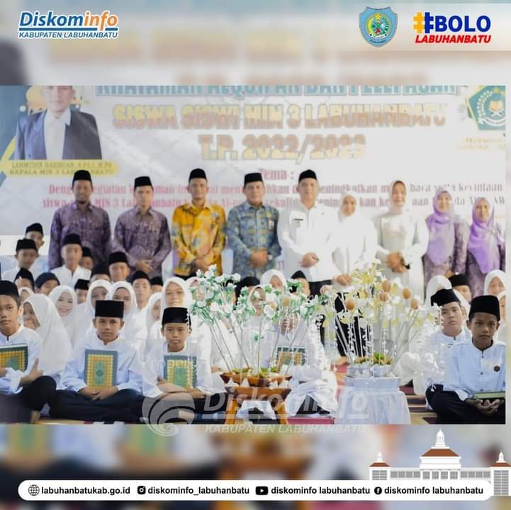 LABUHANBATU, liputanterkini.co.id – Bupati Labuhanbatu dr.H.Erik Adtrada Ritonga,MKM didampingi Ketua TP PKK Kabupaten Labuhanbatu Ny. dr. Hj. Maya Hasmita Adtrada, Sp. OG, MKM menghadiri Khataman al-qur’an dan pelepasan siswa-siswi MIN 3 Labuhanbatu TP 2022/2023 di Kelurahan Padang Bulan, Kecamatan Rantau Utara, Rabu (24/05/2023).