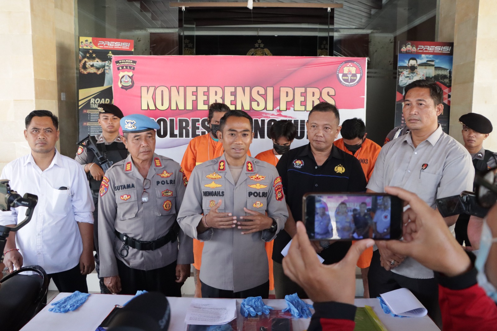 “Dari informasi yang kita terima Tim Operasi Antik Agung 2023 yang dipimpin Oleh Kasat Resnarkoba Akp I Made Sudarta,S.H pada tanggal 10 Mei 2023 sekira pukul 01.30 Wita dengan TKP Gang Buntu di Jalan Ngurah Rai Kecamatan Klungkung Kabupaten Klungkung berhasil mengamankan 2 orang dengan inisial T dan IK, dari hasil penggeledahan ditemukan narkotika jenis shabu dan pelaku mengakui memiliki/menguasai barang tersebut, adapun barang bukti berupa 1 (satu) buah plastik klip berisi kristal bening diduga mengandung sediaan narkotika jenis shabu dengan berat masing-masing 0,26 gram bruto atau 0,15 gram netto; 1 (satu) buah tabung plastik kecil menyerupai peluru berwarna bening; 1 (satu) buah Handphone merk ”Oppo A12” berwarna hitam 1 (satu) buah Handphone merk ”Redmi Note 11” berwarna hitam dan 1 (satu) unit sepeda motor merk Vario warna putih strip hitam dengan Nopol Dk 3049 MQ dengan STNK beserta kunci kontaknya” Ungkap Kapolres Klungkung AKBP I Nengah Sadiarta,S.I.K.,S.H.,M.K.P. yang didampingi Kasat Resnarkoba Kasat Resnarkoba Akp I Made Sudarta,S.H, Kasi Humas Iptu Agus Widiono,S.H., dan Kasi Propam Akp I Made Sutama saat Press release berlangsung di Loby Aula Jalag Dharma Pandhapa. Rabu, 31/5/2023.