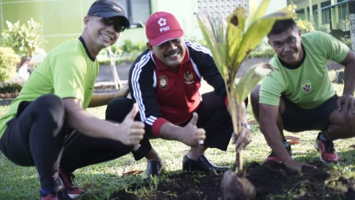 KLUNGKUNG, liputanterkini.co.id – Wakil Bupati Klungkung I Made Kasta menyerahkan bantuan 10 bibit kelapa genjah kepada Komandan Kodim 1610 Klungkung, Selasa (6/6). Pohon ini selanjutnya ditanam bersama sama dihalaman kantor Kodim 1610 Klungkung. Selasa (6/6/2023).