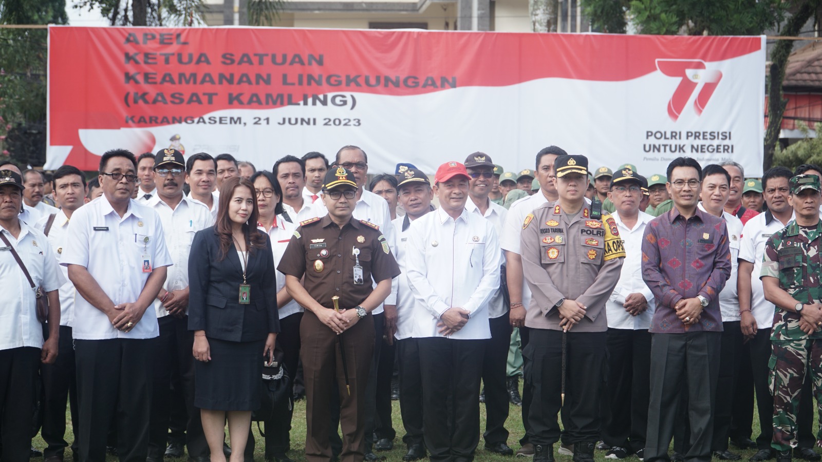 Bupati Karangasem I Gede Dana, S.Pd., M.Si. bertindak selaku Pimpinan Apel, dalam sambutannya membacakan amanat dari Kepala Kepolisian Negara Republik Indonesia yang isinya antara lain diawali dengan memanjatkan puji dan syukur ke hadirat Tuhan Yang Maha Kuasa, karena atas limpahan rahmat dan karunia-Nya kita masih diberikan kesehatan, serta kekuatan untuk melaksanakan Apel Ketua Satkamling Tahun 2023.