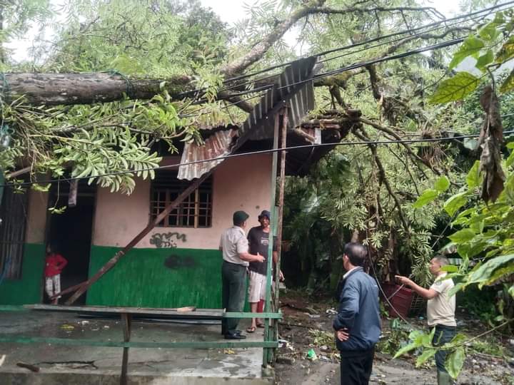 Kondisi Rumah Warga yang tertimpa Pohon tersebut Akibat Derasnya turun Hujan di tambah angin kencang sehingga Pohon yang ada di Pinggir jalan tumbang menimpa atap Rumah dan tidak ada ke rugian yang lain juga tidak ada korban jiwa.
