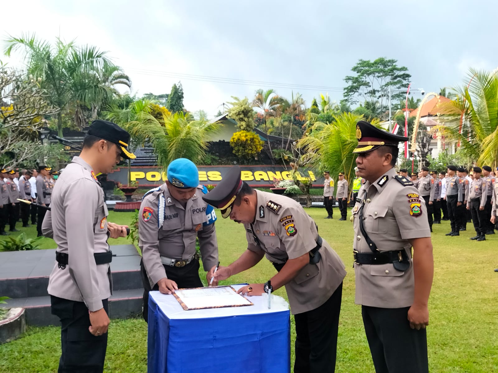 Bertindak selaku Irup Kapolres Bangli AKBP I Dewa Agung Roy Marantika, S.H., S.I.K, Perwira upacara Akp I Wayan Sudiarsa dan Komandan upacara Iptu I Wayan Sudiadi, SH.