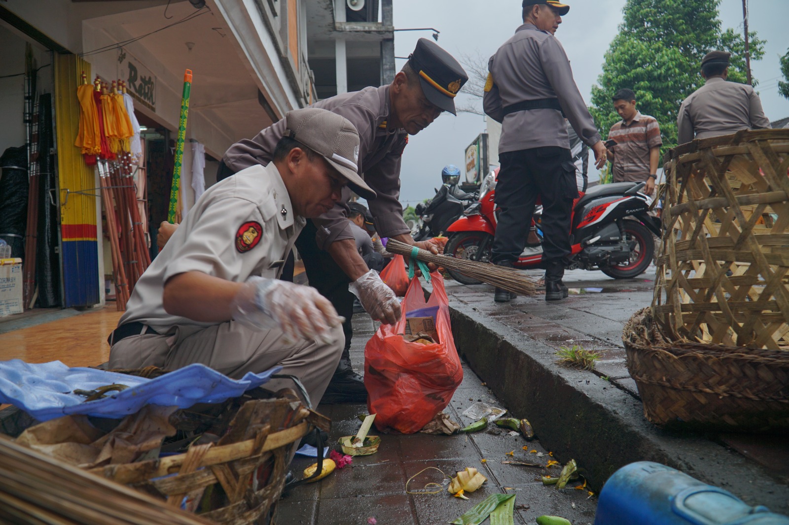 Kegiatan bersih brrsih sampah yang pada hari ini di pimpin Waka Polres Bangli Kompol Nyoman Gatra, Sh., MH didampingi Kabag SDM Polres Bangli Kompol Made Adi Suryawan, Sh., MM bersama anggota dan elemen masyarakat. Kita laksanakan di Terminal loka Crana dan Pasar Kidul Bangli. Kegiatan Bersih sampah ini merupakan wujud nyata Polres Bangli bersama masyarakat peduli lingkungan, “Ucap Kompol Nyoman Gatra.