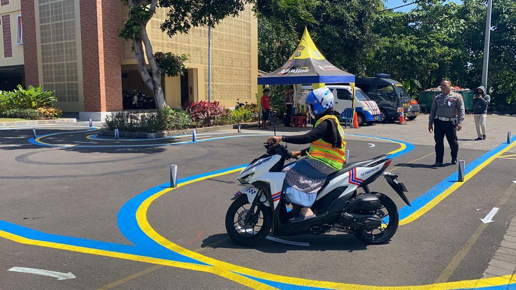 “Mulai hari ini, keempat poin ujian praktik juga akan disatukan menjadi satu kesatuan. Kalau sebelumnya kan sendiri-sendiri. Tes keseimbangan sendiri, angka 8 sendiri, zig-zag sendiri, kalau sekarang jadi satu kesatuan, langsung di satu lintasan,” tambahnya.