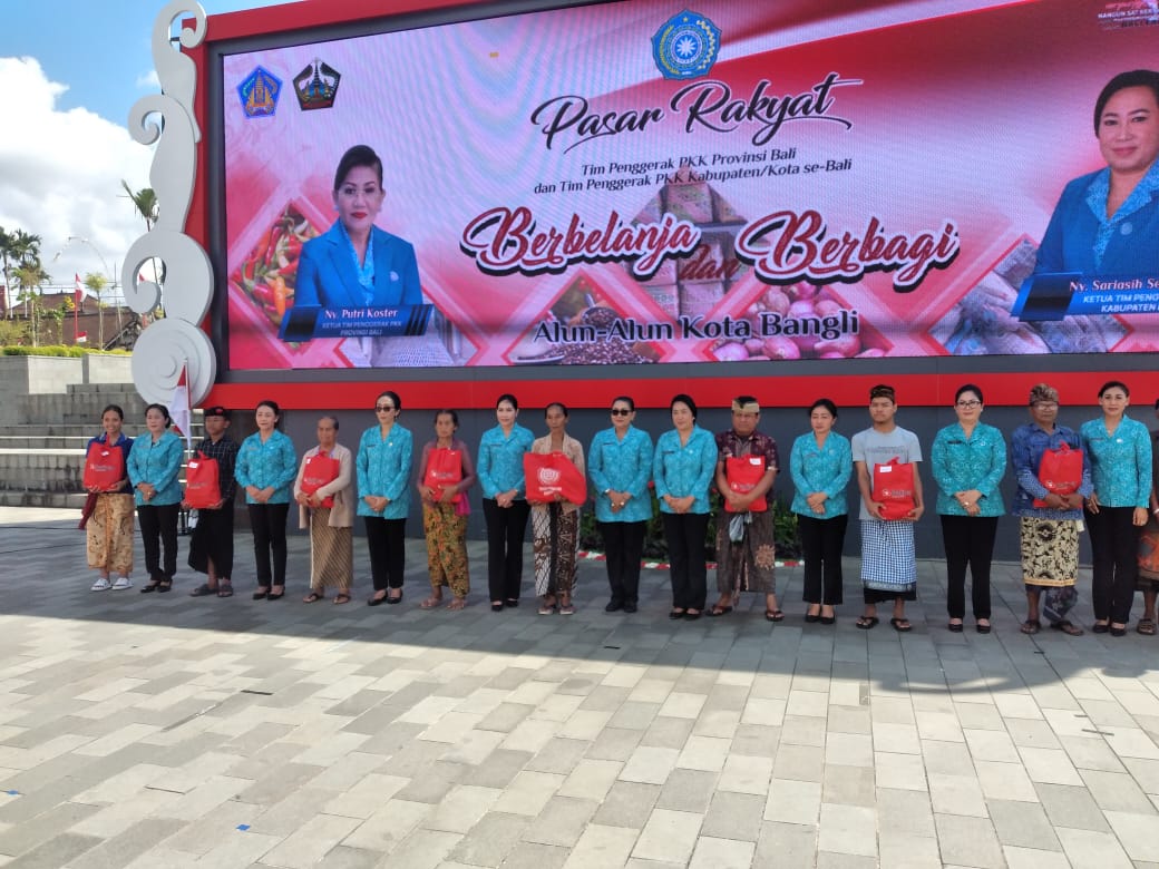 “Pasar rakyat ini merupakan wujud dari gotong royong yang berlandaskan berbagi kepada masyarakat di Kab. Bangli khususnya dan saya ucapkan terimakasih kepada ibu Ketua TP PKK Prov. Bali yang telah hadir dan berbelanja di stand pasar rakyat Kab. Bangli.” Ujar Ny. Sriasih Sedana Arta.