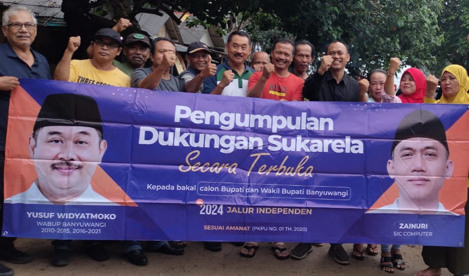 Salah satunya relawan (Yusuf – Zainuri) bakal calon (balon) yang akan maju jalur independent di Pilkada Banyuwangi kini sudah mulai terbentuk. Organisasi dadakan ini bahkan mulai aktif mensosialisasikan figur Yusuf dan Zaenuri bakal maju di Pilkada nanti.