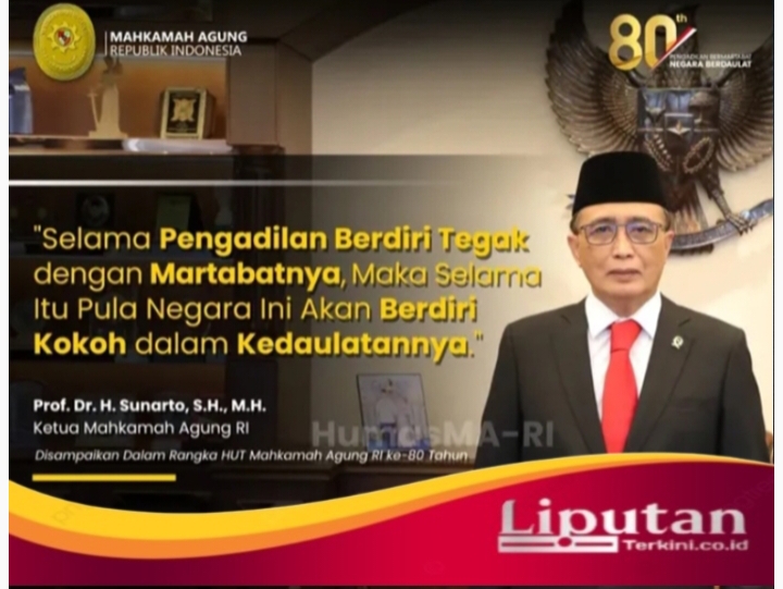 JAKARTA – liputanterkini.co.id | Di Hari Ulang Tahun Mahkamah Agung Republik Indonesia yang ke-80 adalah Wujud Komitmen Peradilan Agung guna menjaga harkat serta martabat dan Marwah institusi Hukum di Indonesia.