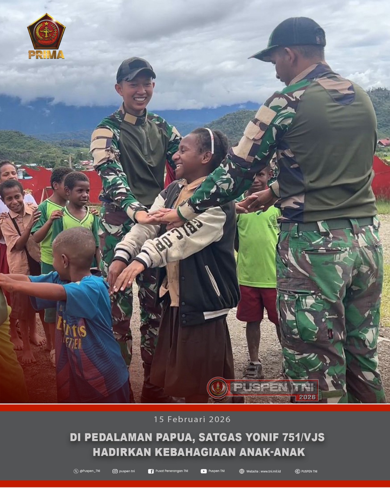 “Kegiatan ini merupakan wujud kehadiran TNI yang tidak hanya menjaga keamanan wilayah, tetapi juga hadir sebagai sahabat rakyat yang mendampingi dan menyemangati generasi penerus di Tanah Papua,” ujar Dansatgas.