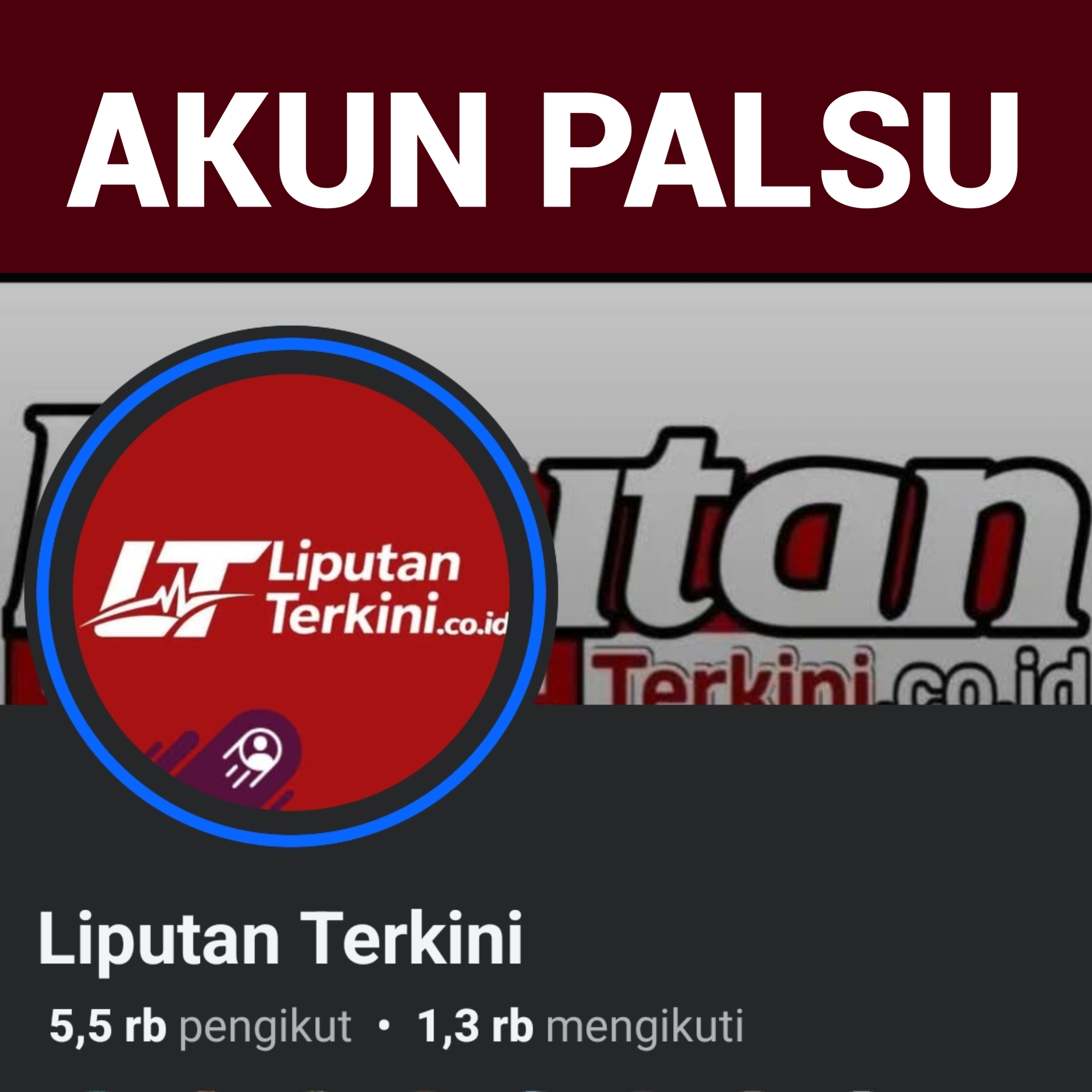 Akun tersebut diketahui menggunakan nama dan identitas yang menyerupai media Liputan Terkini, sehingga berpotensi menimbulkan kesalahpahaman di kalangan masyarakat dan pembaca.