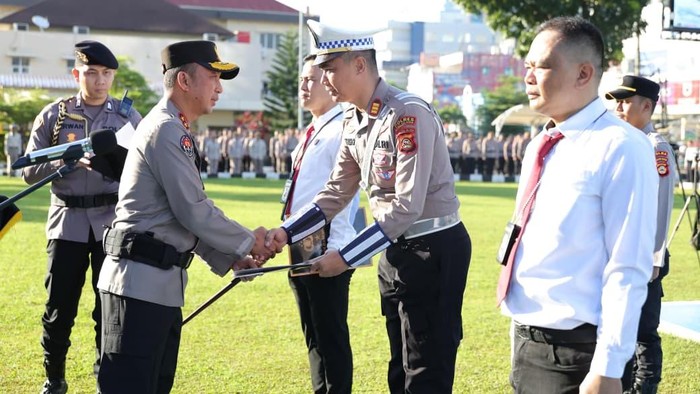 Penghargaan itu diberikan saat Irjen Sandi memimpin apel pagi jajaran Polda Sumsel di Lapangan Apel Mapolda Sumsel, Senin (13/4/2026) pagi. Dalam amanatnya, Irjen Sandi menegaskan bahwa pelaksanaan tugas sehari-hari bukanlah sekadar rutinitas atau formalitas belaka, melainkan sarana untuk memperkuat soliditas sebagai pelindung, pengayom, dan pelayan masyarakat.